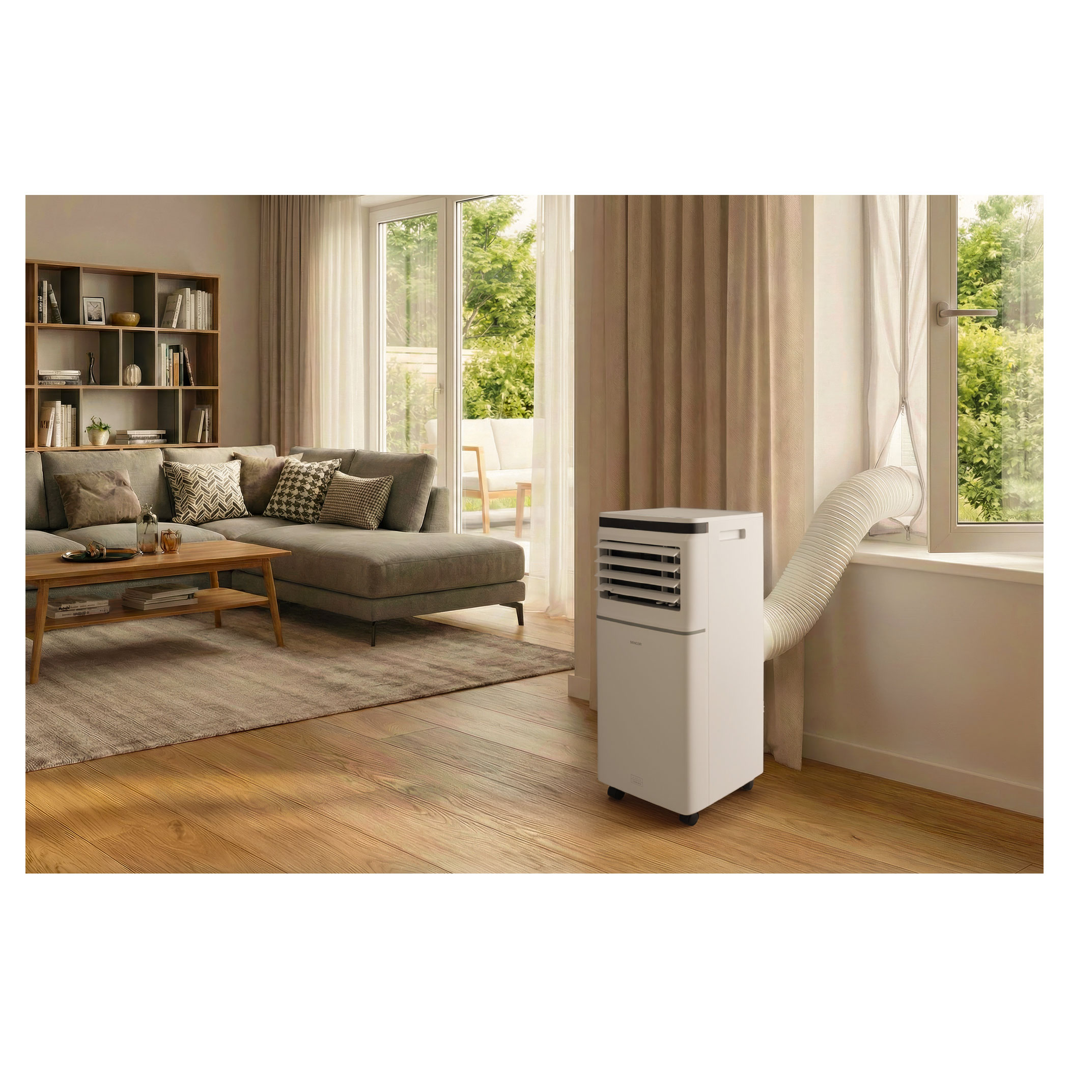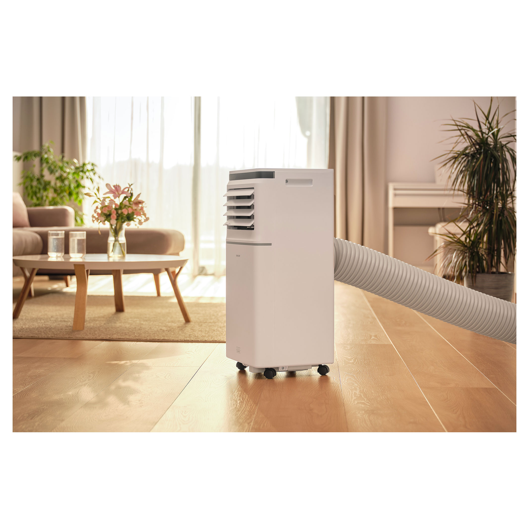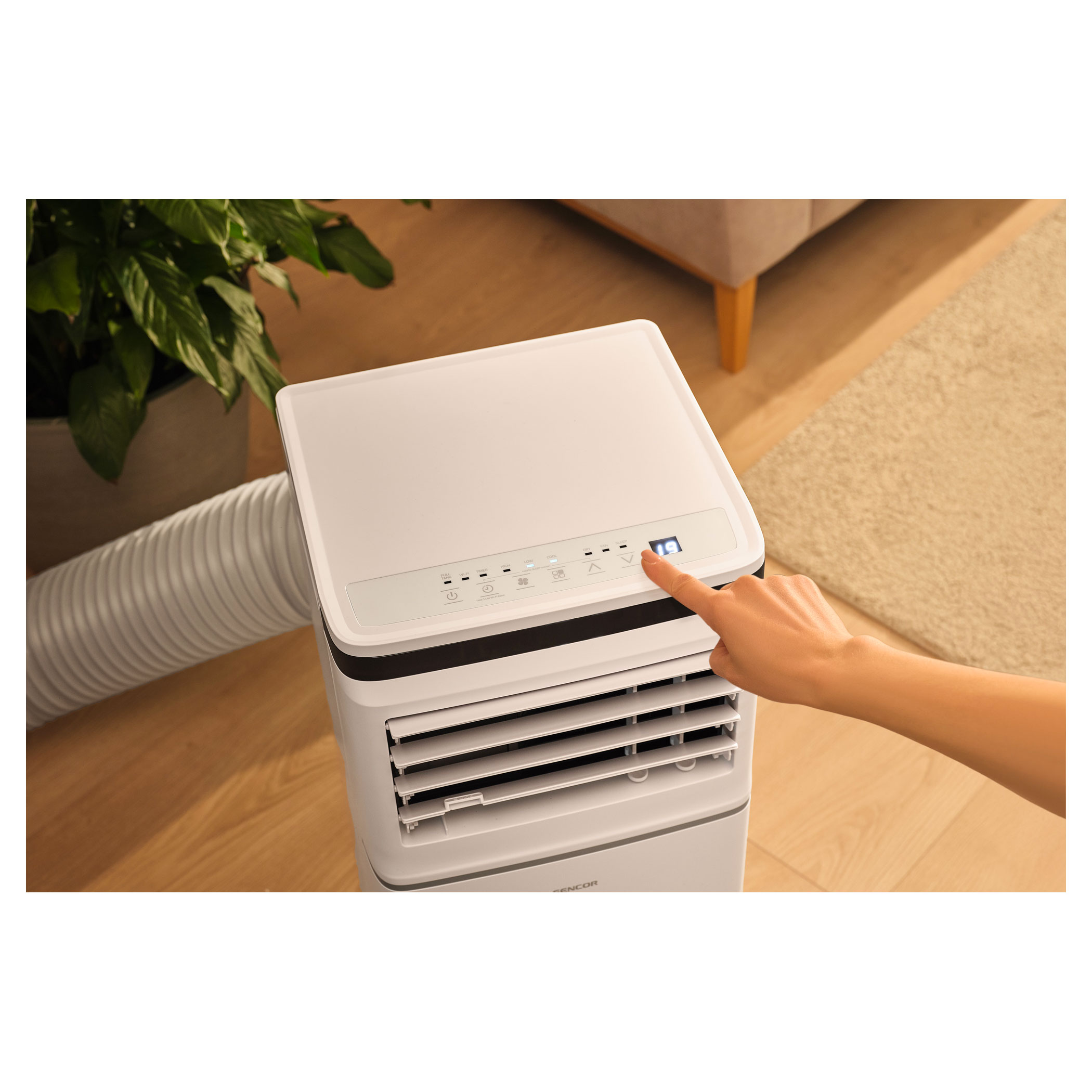 Klimatyzatorem można sterować na 3 sposoby. Oprócz klasycznego pilota czy sterowania bezpośrednio z panelu klimatyzatora dodaliśmy możliwość sterowania klimatyzatorem praktycznie z dowolnego miejsca za pomocą własnego smartfona z aplikacją Sencor HOME. W miejscach, gdzie masz dostęp smartfona do internetu, masz możliwość podłączenia się do swej sieci domowej, więc także do sterowania swoim Wi-Fi klimatyzatorem Sencor. Tak więc możesz mieć w domu przyjemnie, nawet po powrocie z pracy lub wycieczki.W przeciągu dnia chcesz ochładzać swoje biuro, jednak w nocy wolisz klimatyzator mieć w sypialni? Łatwy transport zapewnią 4 kółka i zintegrowana rękojeść.