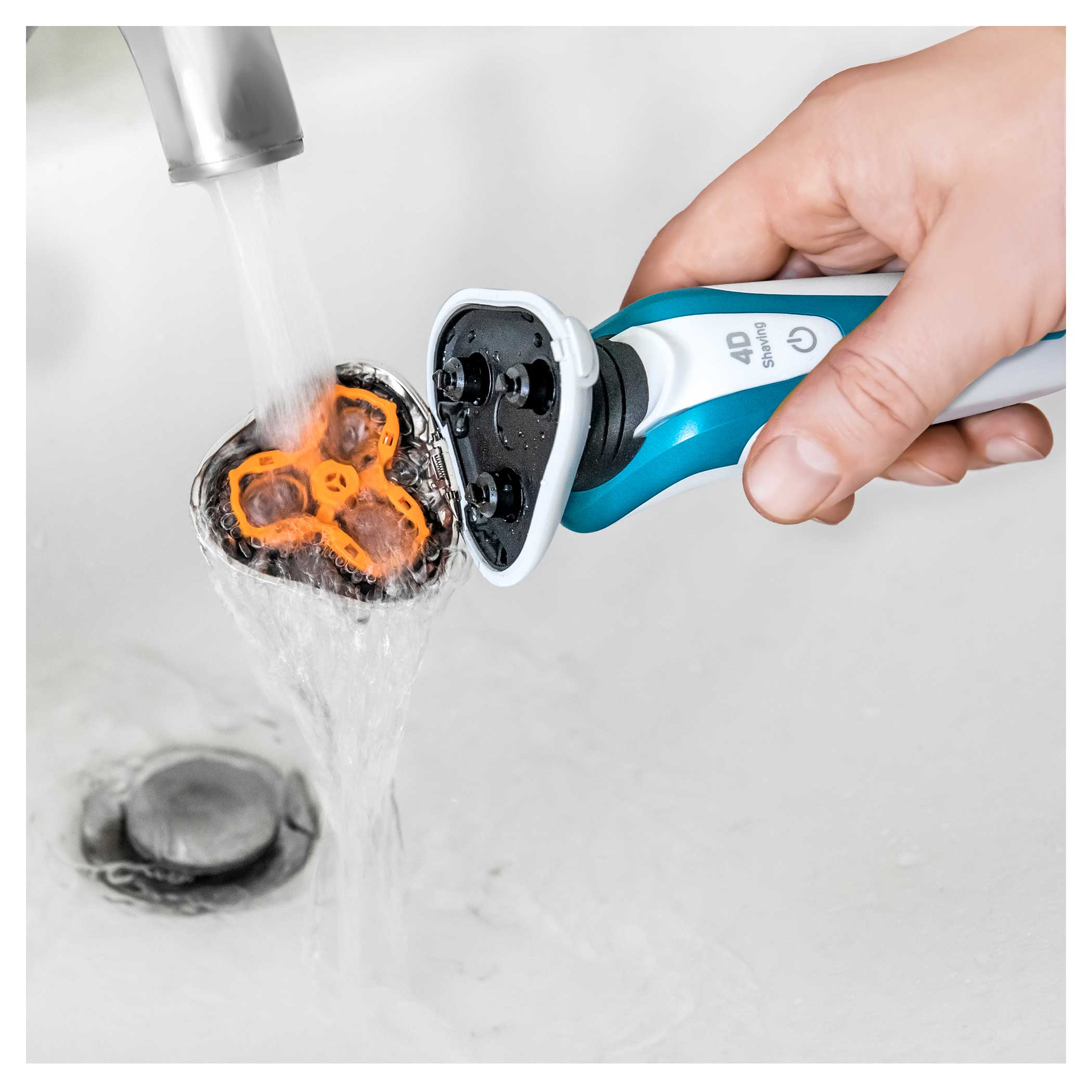 Wychylne głowice golące, dzięki technologii 4D, doskonale dopasują się do wszystkich nierówności twarzy