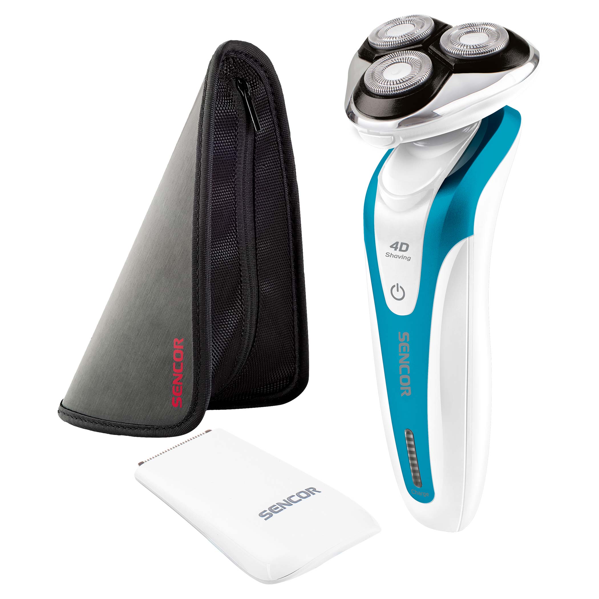 Dodatkowe akcesoria: kabel ładujący, szczoteczka do czyszczenia, końcówka goląca, końcówka do przycinania, pokrywa końcówki golącej, praktyczne etui podróżne