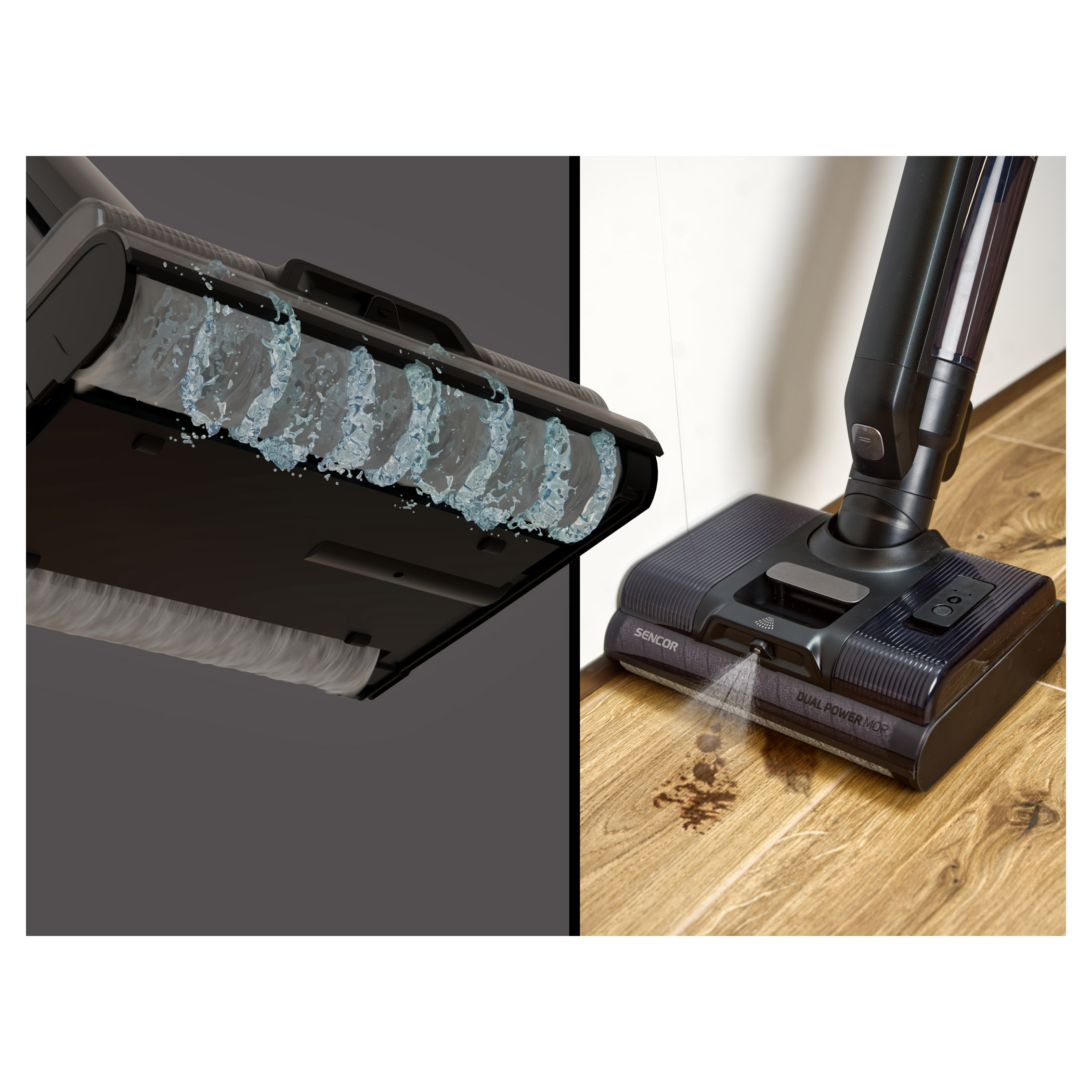 - Dual Power Mop – system dwóch obracających się szczotek