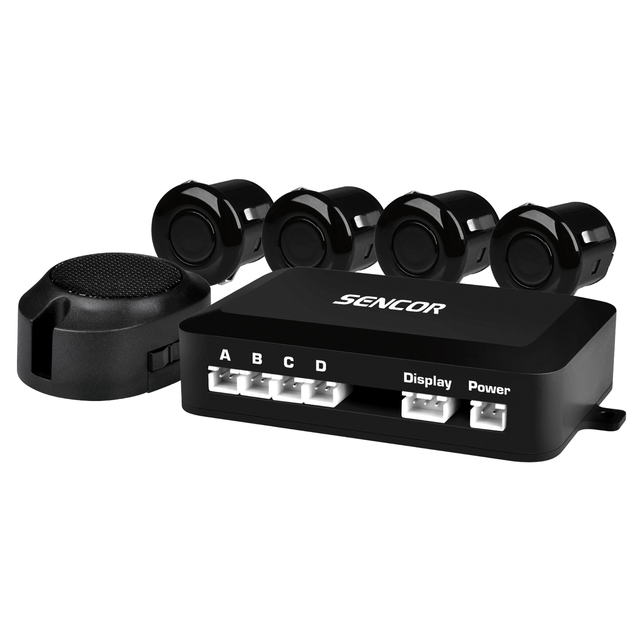 W zestawie: moduł sterujący, 4 czujniki ultradźwiękowe (czarne błyszczące), sygnalizator akustyczny, przewód zasilający, wiertło - otwornica, zestaw akcesoriów, instrukcja obsługi