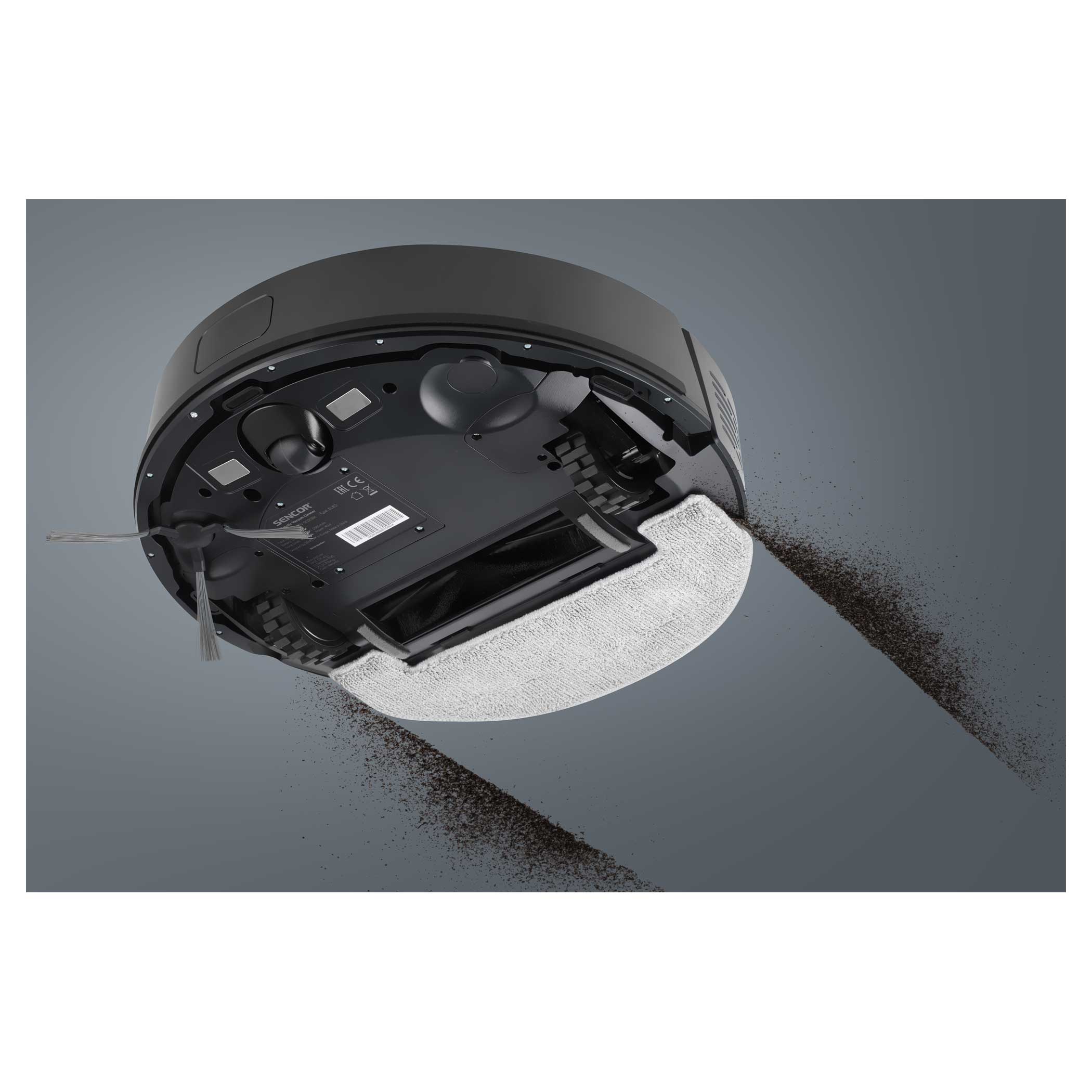 Sencor SRV 9020BK to inteligentny automatyczny odkurzacz, który jednocześnie czyści i odkurza. Dzięki silnikowi o mocy ssania 3000 Pa możesz liczyć na doskonałe rezultaty. Akumulator Li-Ion o pojemności 2600 mAh zapewnia do 130 minut pracy na jednym ładowaniu. Idealną orientację w przestrzeni zapewnia szereg inteligentnych czujników i nawigacja laserowa Lidar. Dzięki niemu z łatwością zaplanujesz sprzątanie w poszczególnych pomieszczeniach, a także ustawisz strefy zastrzeżone. Do sterowania można użyć pilota lub aplikacji mobilnej Sencor Home. Możliwe jest proste parowanie za pomocą Bluetooth.