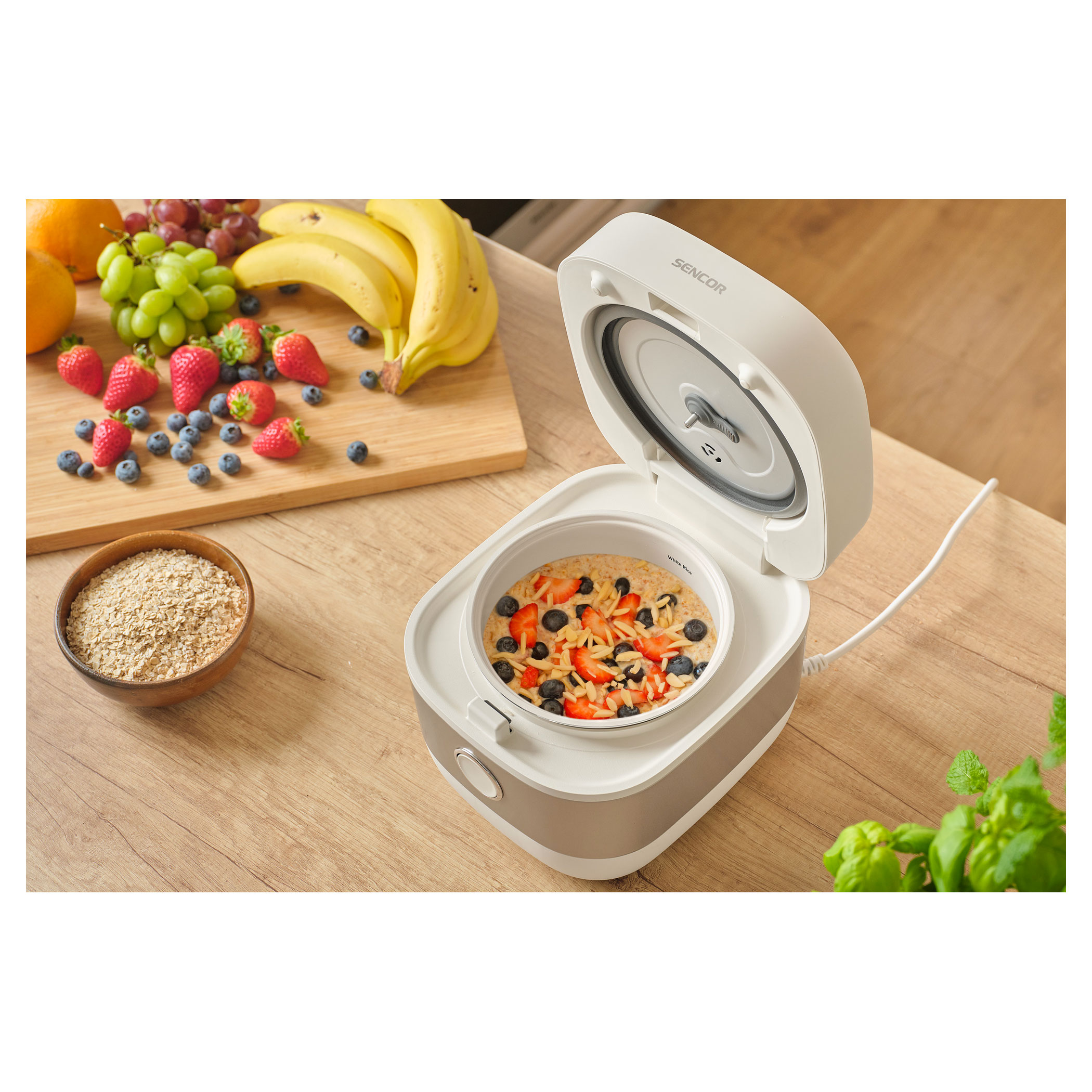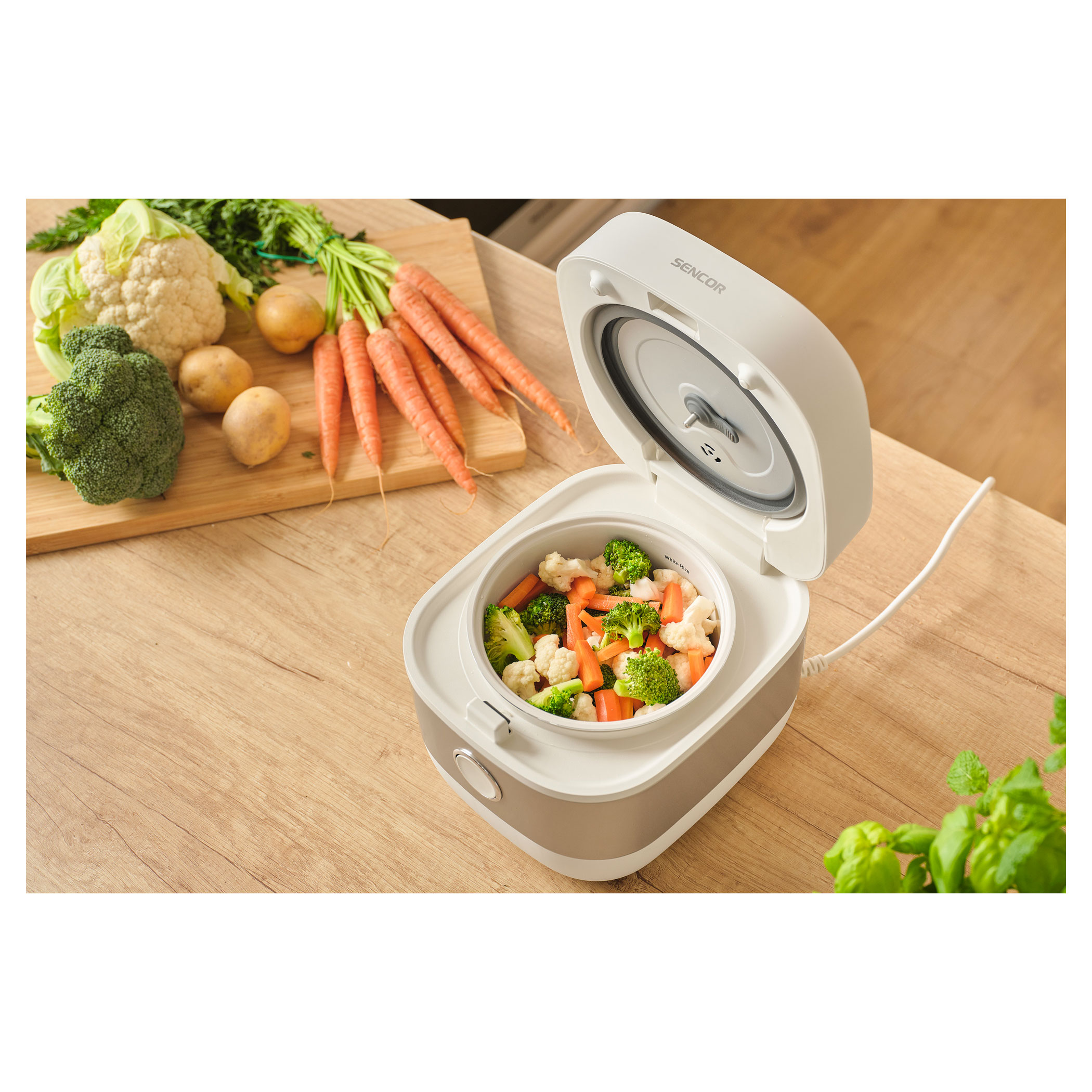 Ryżowar Sencor SRM 1600WH umożliwia wygodne przygotowanie różnych rodzajów ryżu, kasz, zup oraz innych potraw. Wewnętrzny aluminiowy garnek z powłoką ceramiczną o pojemności 1,6 l idealnie sprawdzi się w codziennym gotowaniu domowym. Czytelny wyświetlacz cyfrowy i 6 programów automatycznych zapewniają prostą i intuicyjną obsługę.