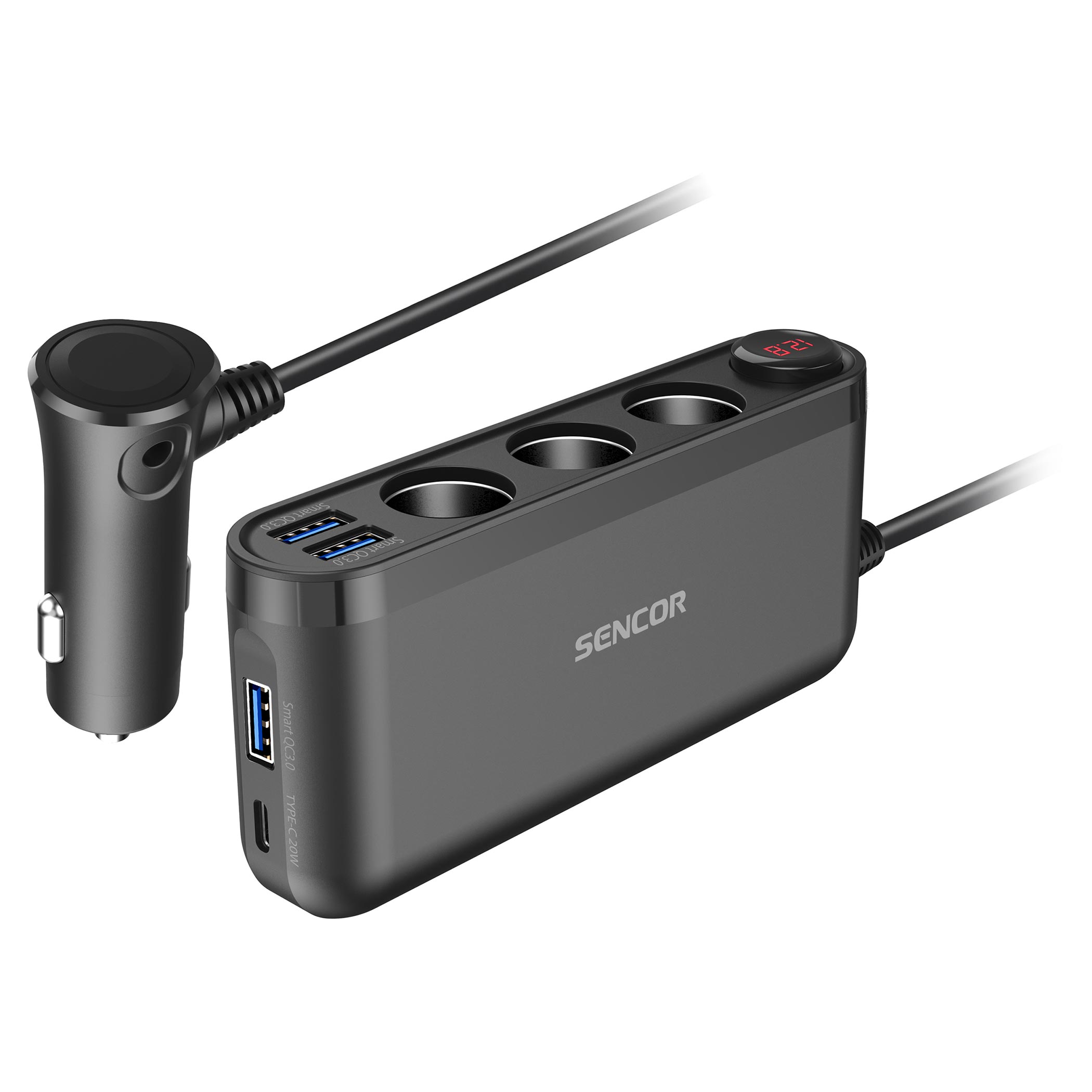 USB-A QC 3,0 -5 V / 3 A, 9 V / 2 A, 12 V / 1.5 AUSB-C PD 20 W -5 V / 3 A, 9 V / 2,22 A, 12 V / 1,67 A