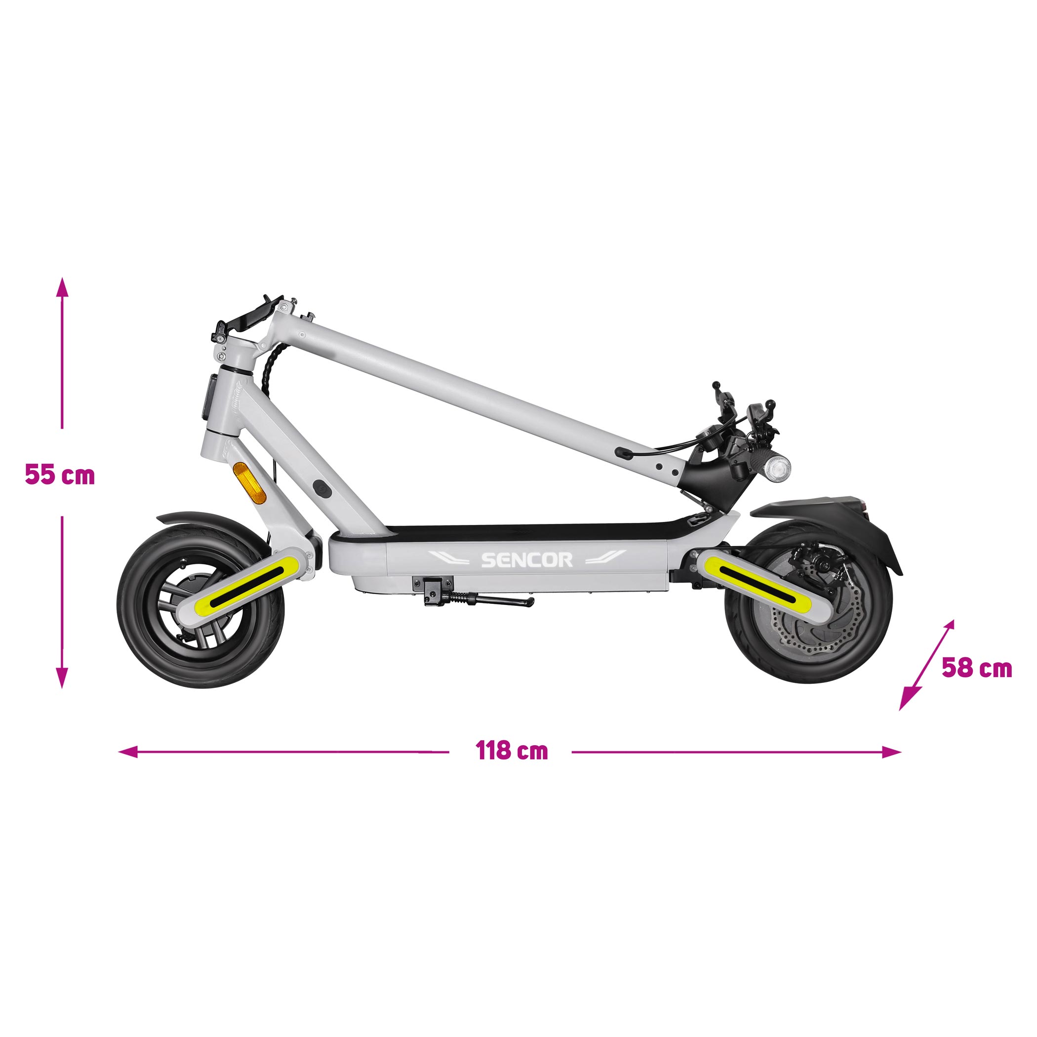 Wymiary: 118 × 58 × 123 cm (rozłożona), 118 × 58 × 55 cm (złożona)
