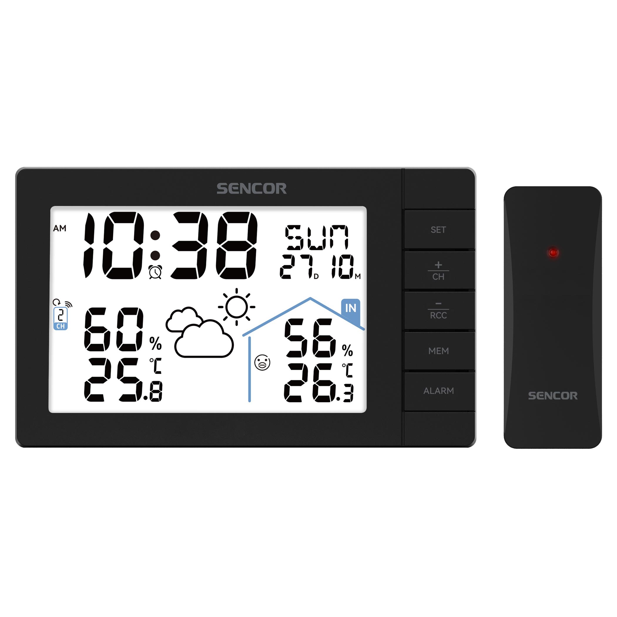 Czy często jesteś zaskoczony pogodą, a zwykłe prognozy są niedokładne? Ze stacją pogodową SENCOR SWS 3200 już się nie pomylisz. Postaw lub zawieś stację pogodową w dogodnym miejscu w domu i włóż 3 baterie AA. Na zewnątrz w ogrodzie lub na balkonie znajduje się czujnik zewnętrzny, który działa bezprzewodowo i wymaga 2 baterii AA. Można go umieścić w odległości do 80 metrów od stacji pogodowej. Po kilku minutach zbierania informacji czujnik wysyła aktualne dane i są one wyświetlane na wyświetlaczu stacji, w tym prognoza pogody na 12-24 godziny w postaci ikon.