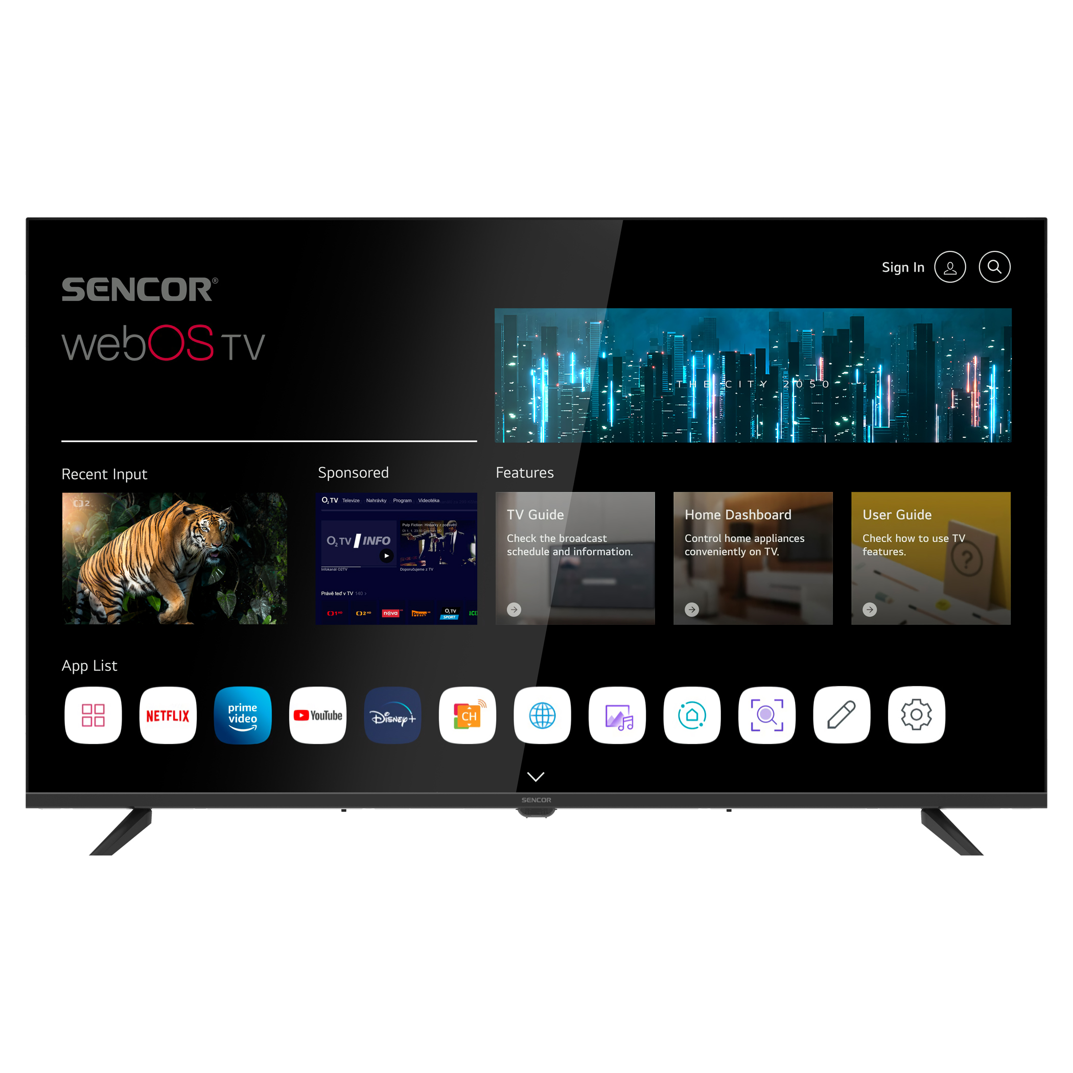 Interfejs webOS SMART TVHBO MAX, DISNEY+, Netflix, Prime Video, Skylink live TV, Youtube, Spotify, Deezer