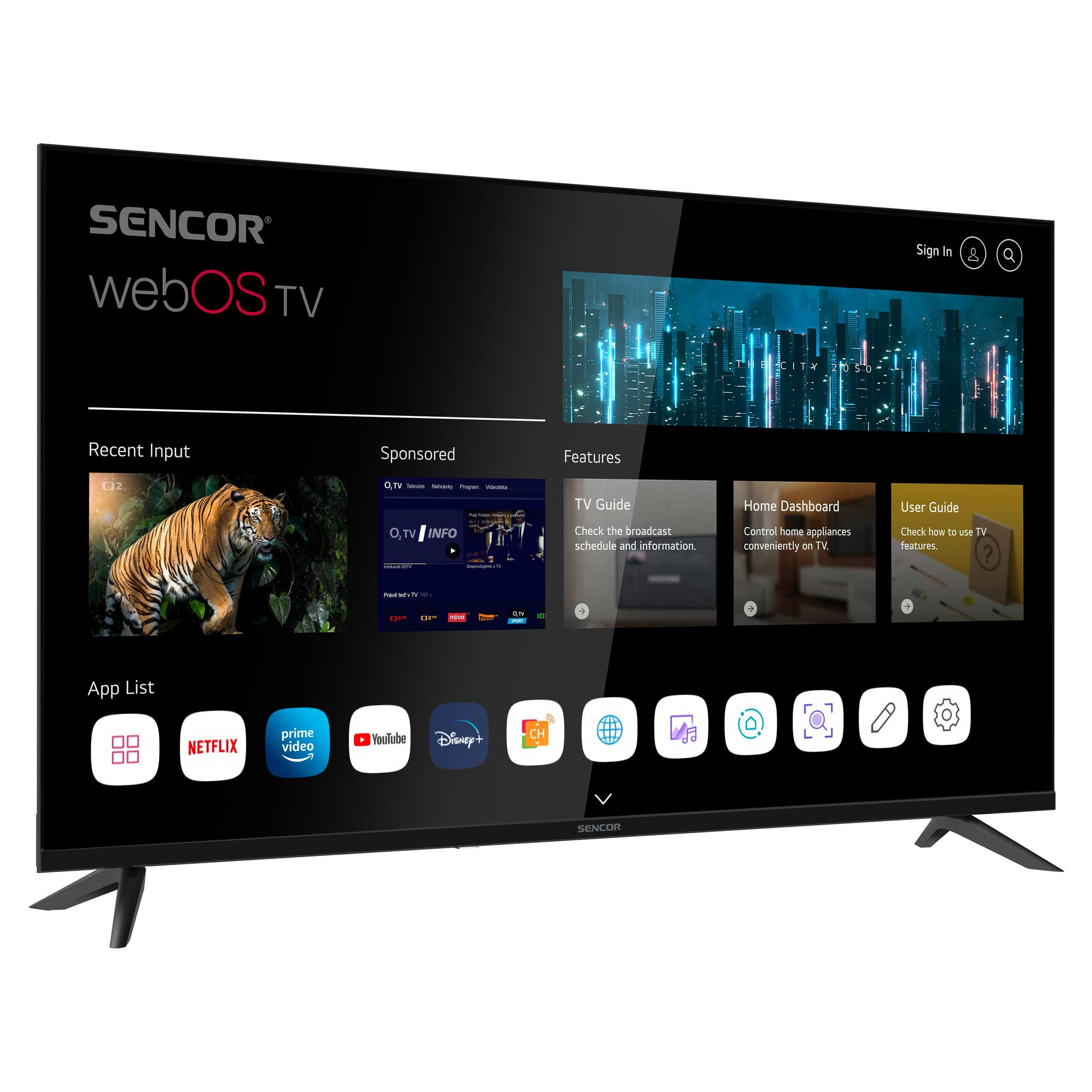 Interfejs webOS SMART TVHBO MAX, DISNEY+, Netflix, Prime Video, Skylink live TV, Youtube, Spotify, Deezer